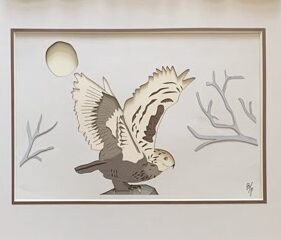 J’aime également travailler la découpe du papier en volume et en couleur, grâce à la superposition de feuilles découpées.